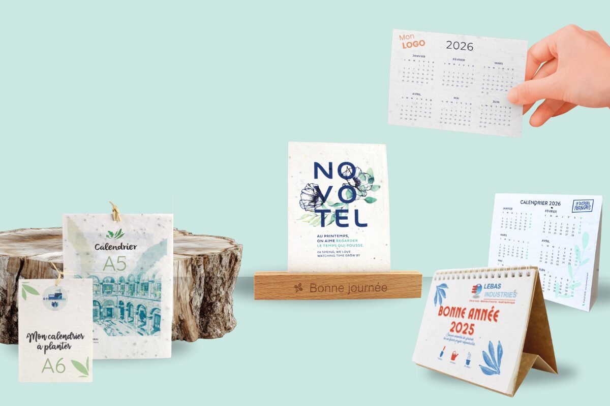 Ne manquez pas nos calendriers 2026 en papier ensemencé, tous personnalisables avec votre logo ou votre design !